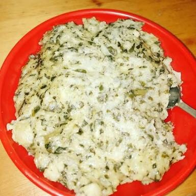 Iyakuthi isaqala nje ukubila le mifino, kugalelwe umgubo kuyo kuze kubondwe de kuyondelelane.